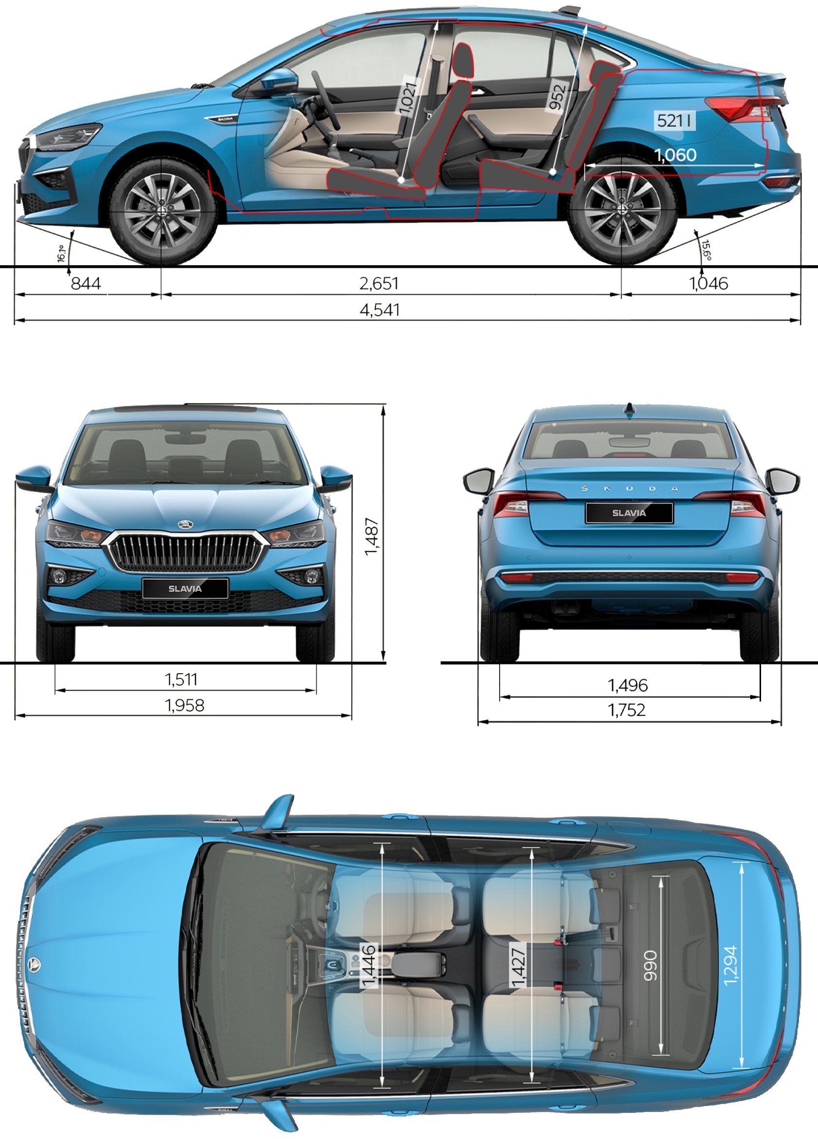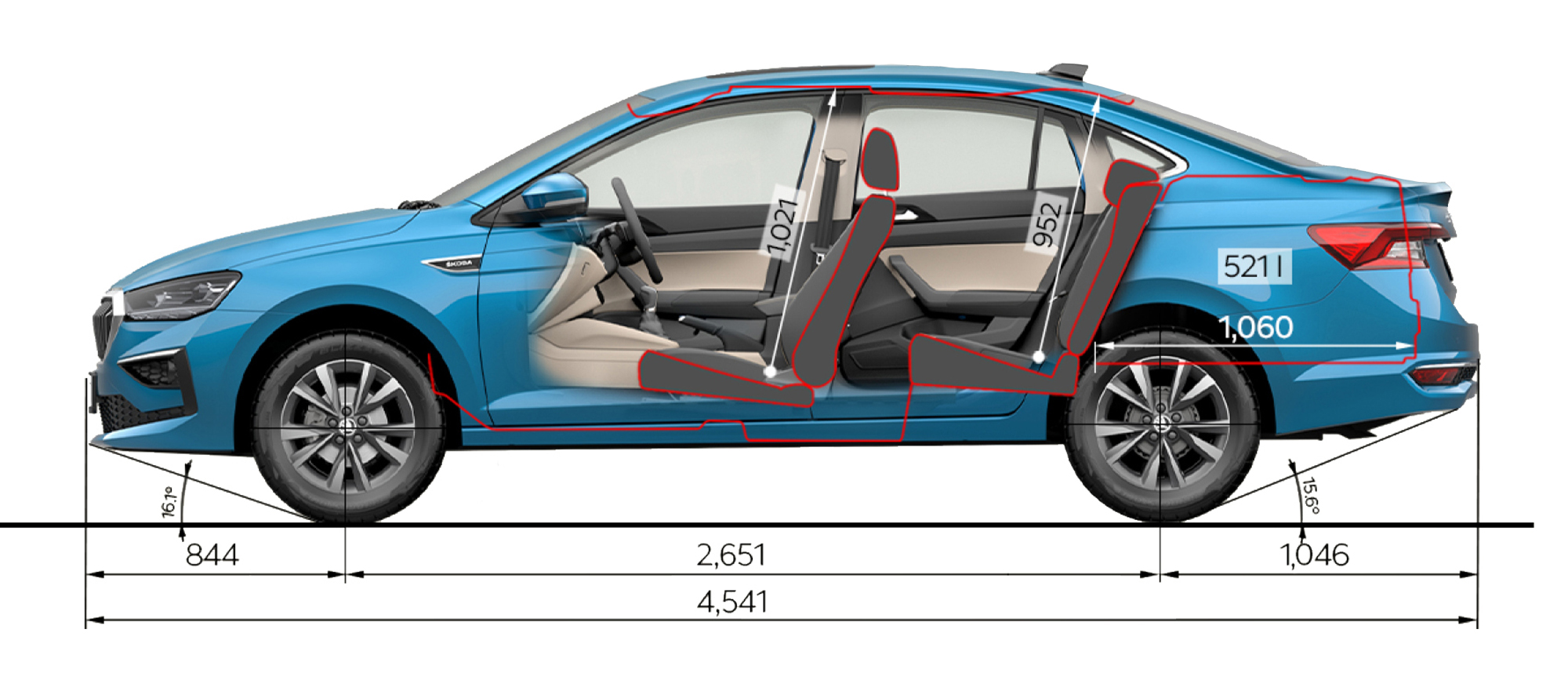 Slavia được trang bị 6 túi khí ở tất cả các phiên bản, bao gồm túi khí trước, bên và rèm. Đây là trang bị thường chỉ có ở các phiên bản cao cấp trong phân khúc – mang đến mức độ bảo vệ toàn diện cho cả người lái và hành khách.