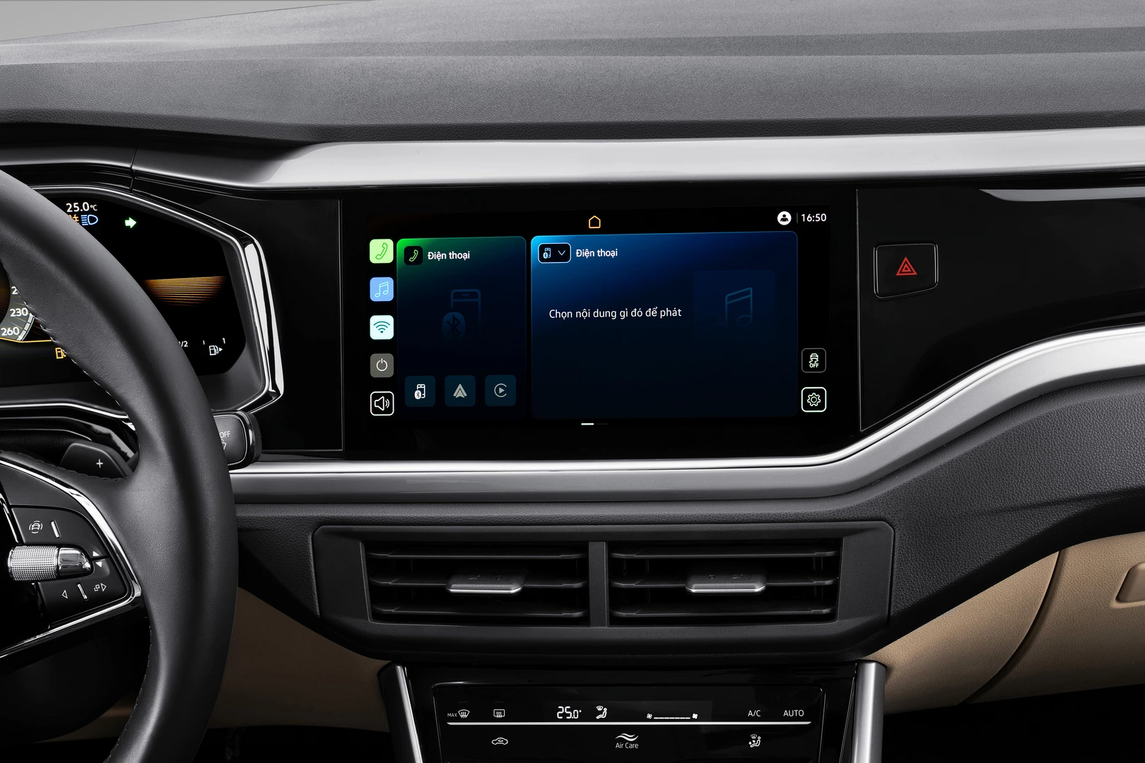Thiết kế liền khối, giao diện trực quan và phản hồi mượt mà. Hỗ trợ kết nối Apple CarPlay và Android Auto không dây mang đến trải nghiệm điều khiển và giải trí liền mạch trên mọi hành trình.
