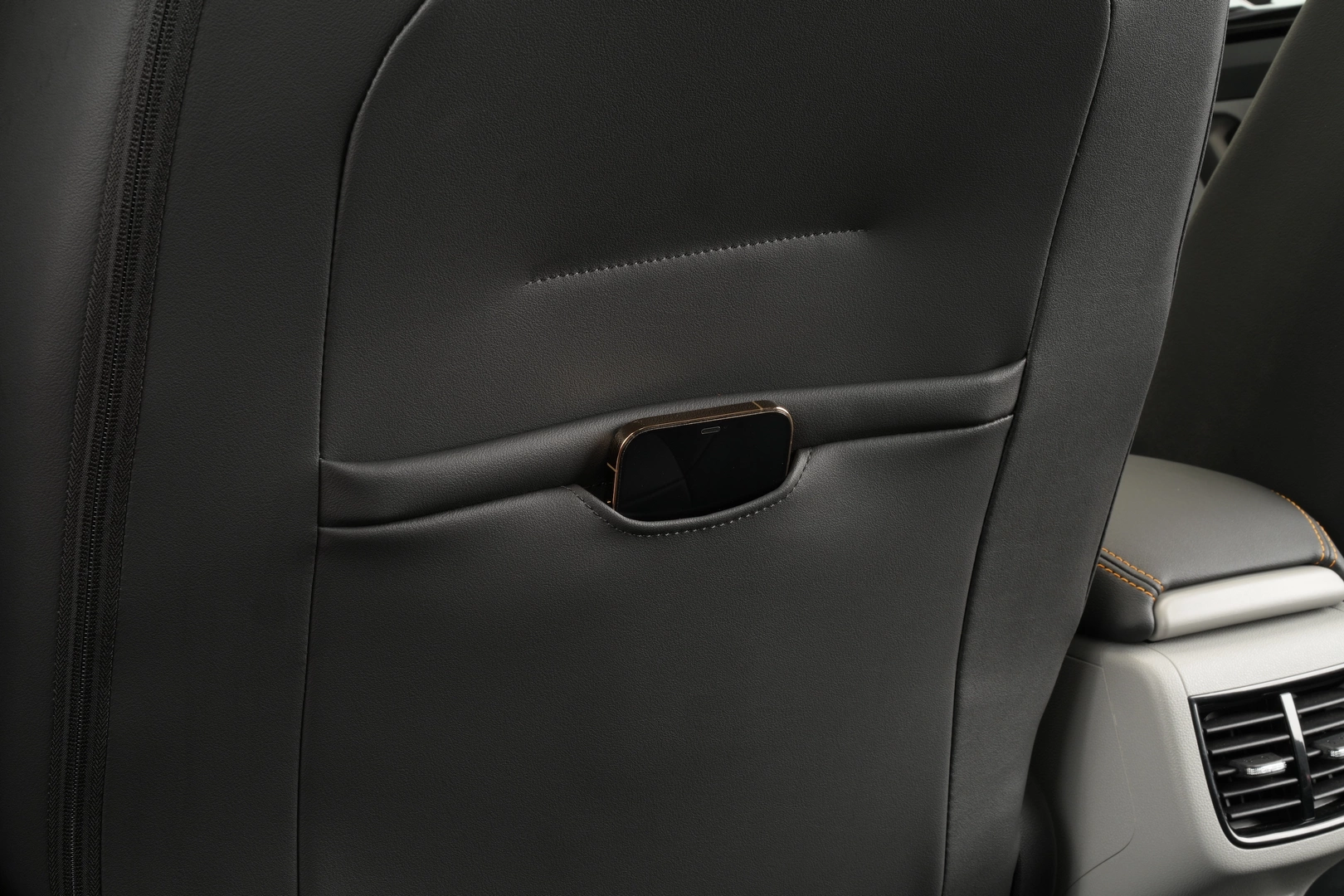 Thiết kế ngăn chứa hai lớp phía sau ghế trước giúp sắp xếp đồ đạc gọn gàng. Ngăn lớn bên trong phù hợp để đựng laptop hoặc máy tính bảng, trong khi ngăn nhỏ bên ngoài phù hợp để đựng điện thoại thông minh.